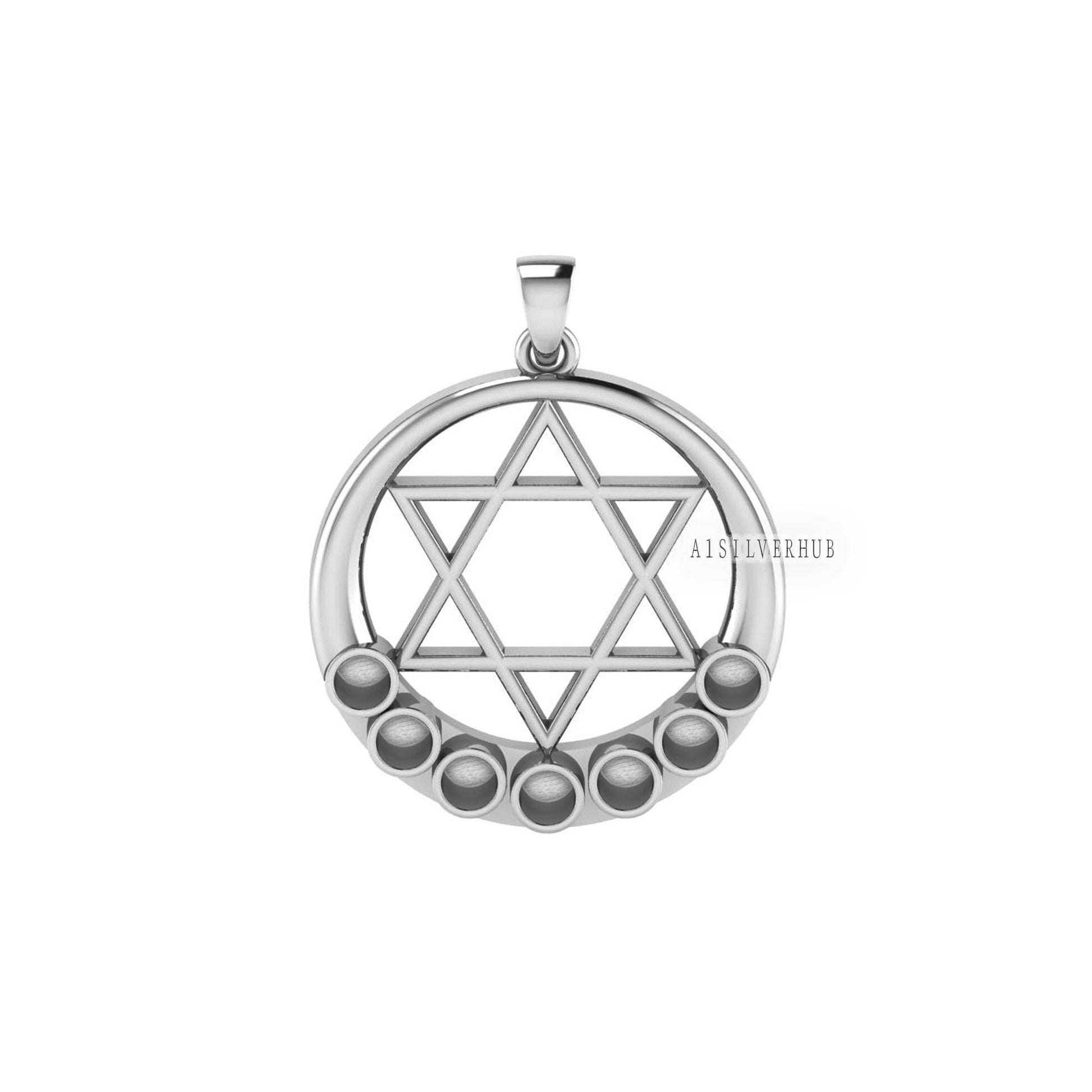 925 Sterling Solid Silver Star Of David Chakra 4mm Round Blank Pendant Setting, Good for Resin & Ashes Work, Keepsake Memorial Jewelry DIY
