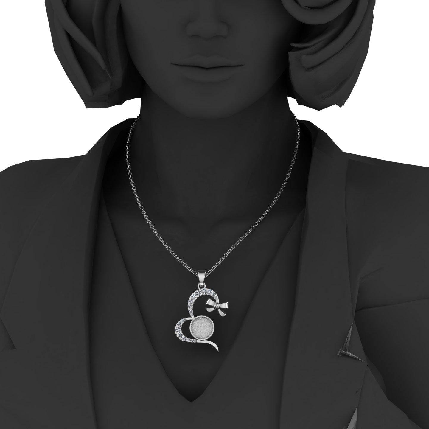 Heart with Knot Round 8mm Blank Bezel Pendant CZ Setted, 925 Sterling Silver, Good for Stone, Resin & Ashes Work, Keepsake Breast Milk DIY