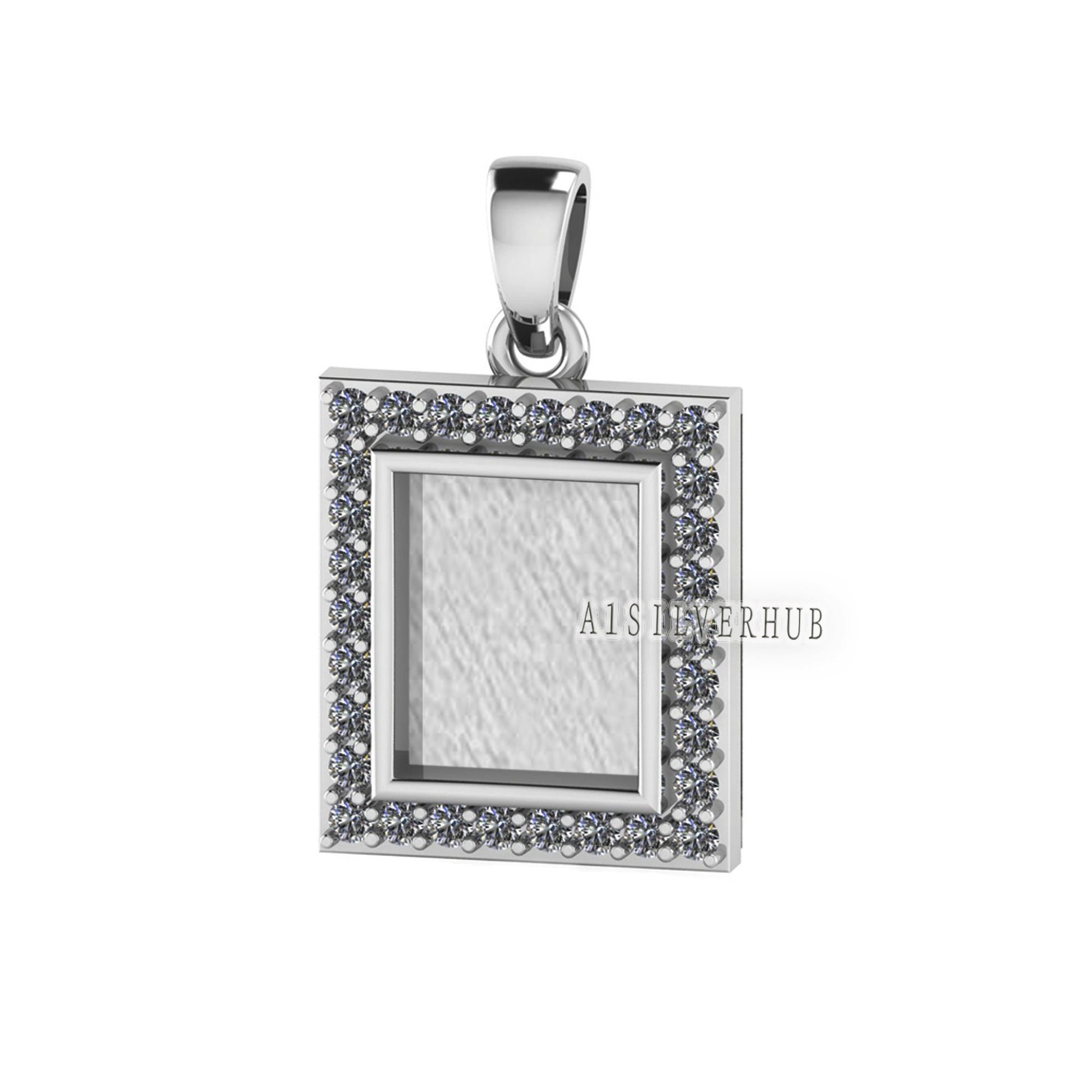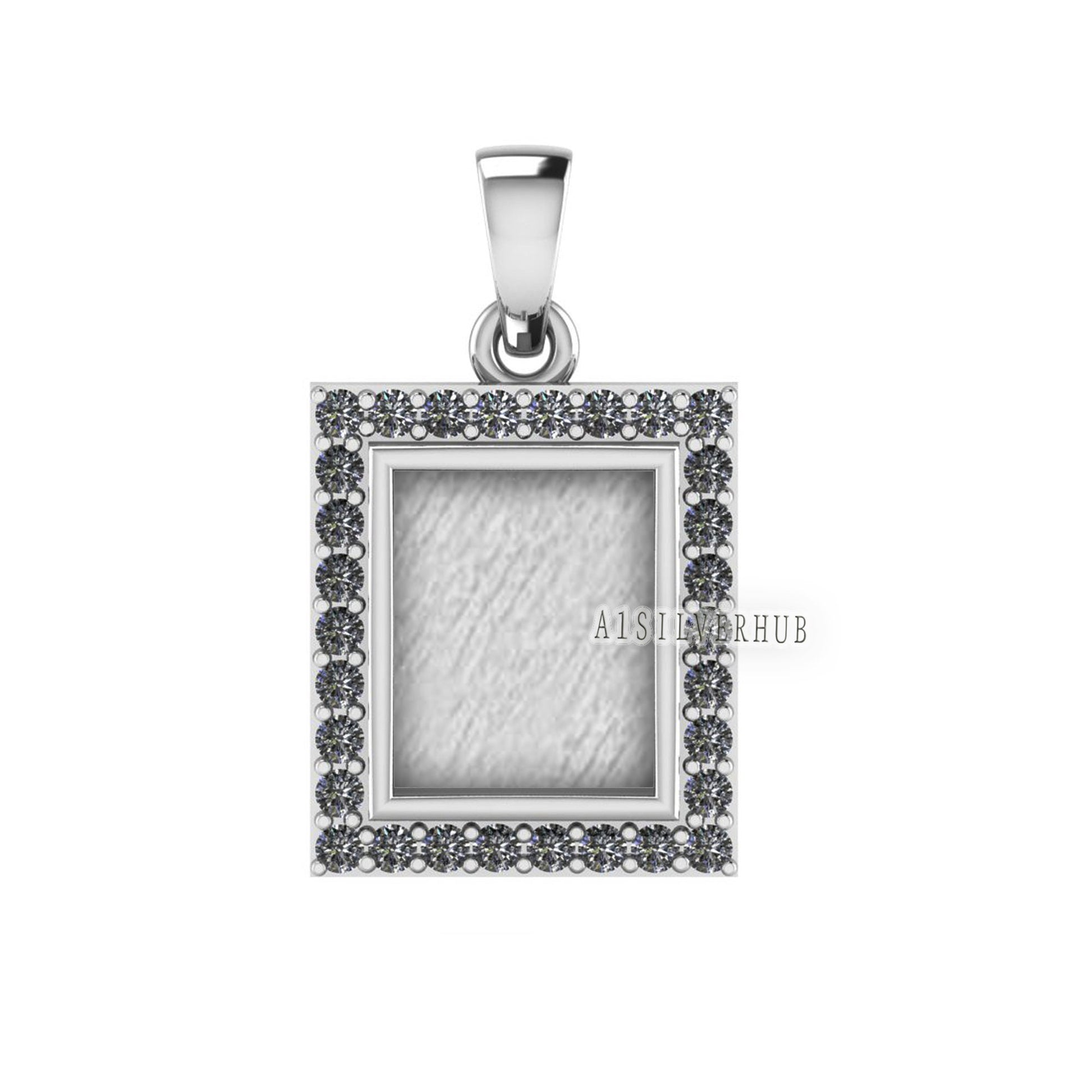 Rectangle Shape 8x10mm Blank Bezel with CZ Setted, 925 Sterling Silver Pendant, Good for Resin & Ashes Work, Keepsake/Breastmilk DIY Crafts